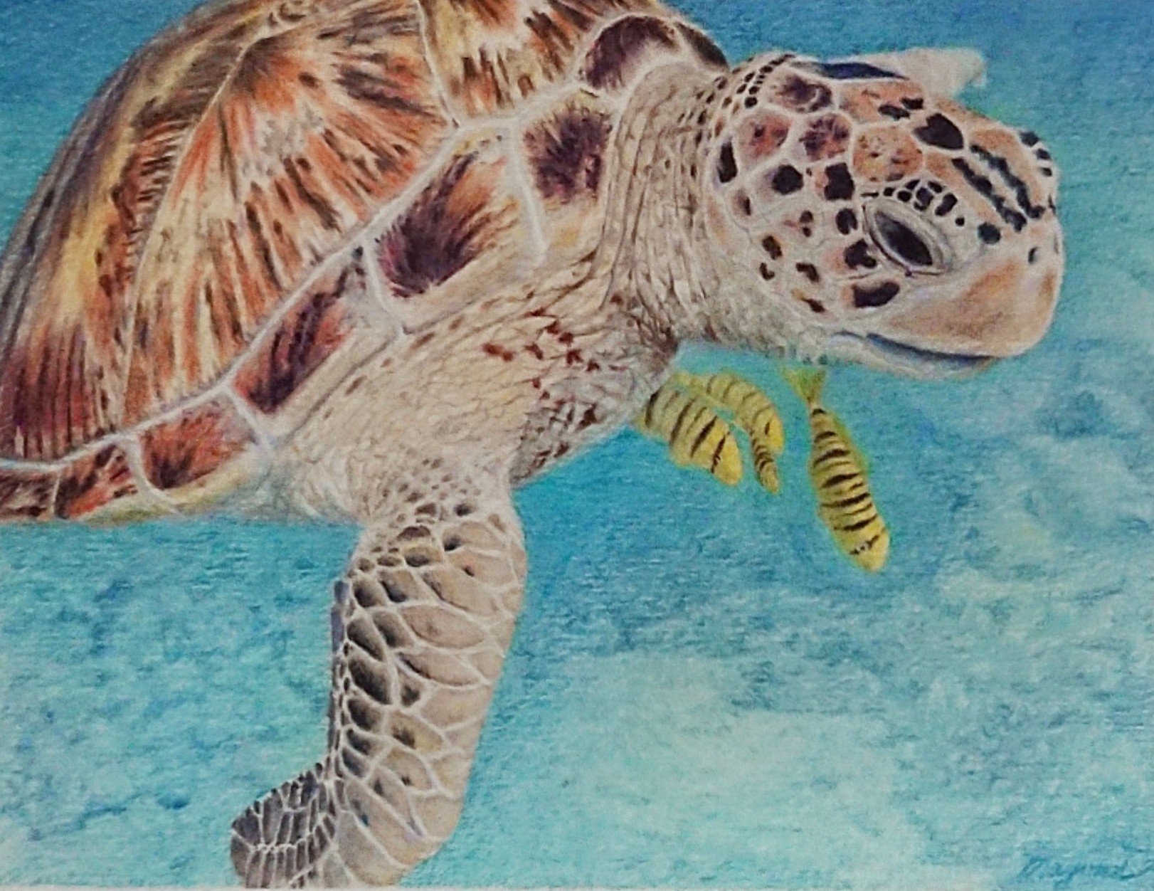 ウミガメ 色鉛筆画 イラスト Copralim Ma